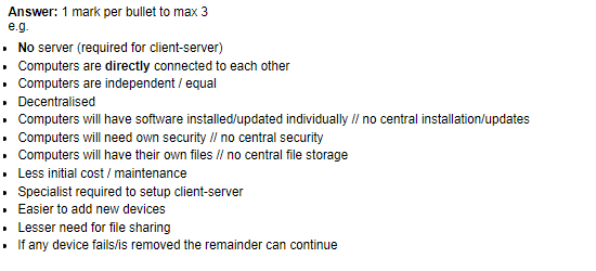 - Less secure than client-server networks