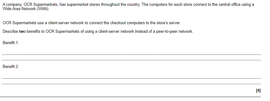 - Advantages of a client-server network include centralized management and control, high level of security and control over access to resources, and scalability.