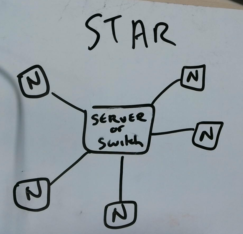 Practice question: What is a star network topology and how does it work? What are some advantages of using a star network topology?