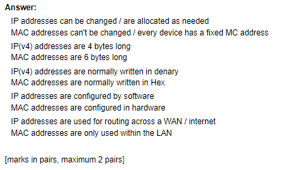 Answer: IP and MAC addresses are used to identify devices on a network and facilitate communication between them. IP addresses are used to identify the recipient of a message, while MAC addresses are used to forward the message to the correct device.