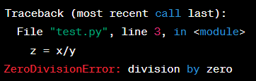 These errors occur when the code is running and something goes wrong. They can be caused by a variety of issues such as invalid user input, insufficient memory, or network problems. In Python, a common runtime error is a "ZeroDivisionError." For example: