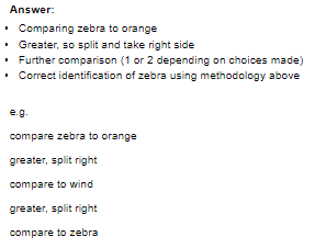 - If the middle item is greater than the target item, the search continues on the lower half of the list.
