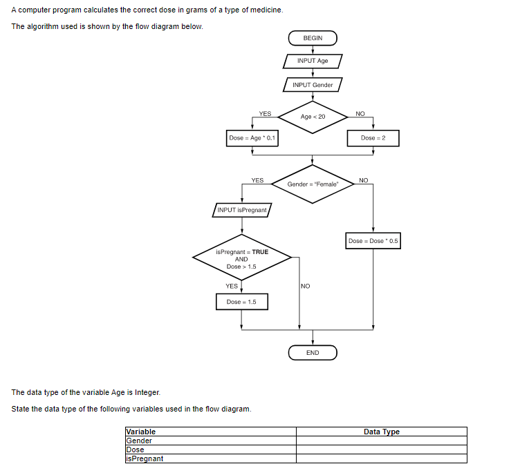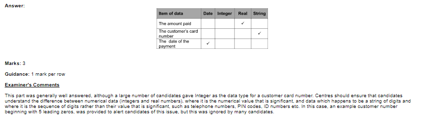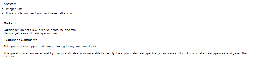 The use of data types in programming such as Integer, Real, Boolean, Character and string